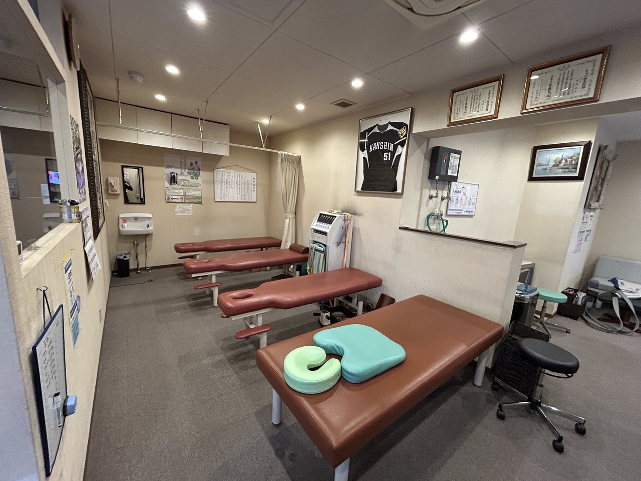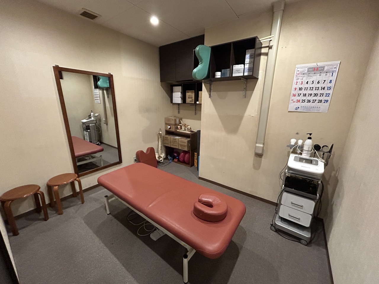 ベッドは4床あり、低周波治療器も置いてあります。