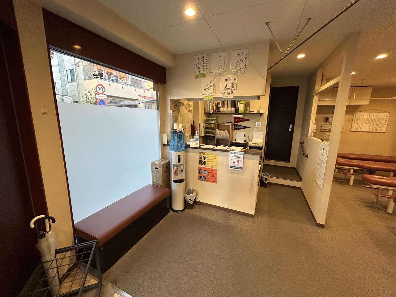 待ち時間もおくつろぎいただけるよう、豊富な雑誌やお水もありますのでご自由にお飲みください。