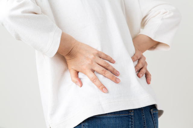 前かがみ・立ち上がり動作で痛みが強く出る状態。